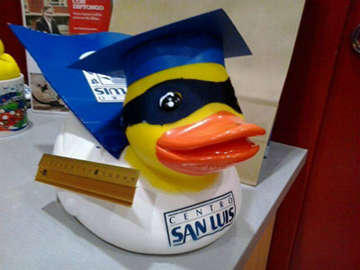 Para ello, nuestros alumnos del centro han vendido a lo largo de las últimas semanas 150 patitos de goma que participarán en tan solidaria regata. Tras conseguir el objetivo, y a modo de premio o reconocimiento, la fundación nos hizo entrega de un patito de goma mucho más grande que tuvimos que pintar y disfrazar con el resultado que veis en la foto.
