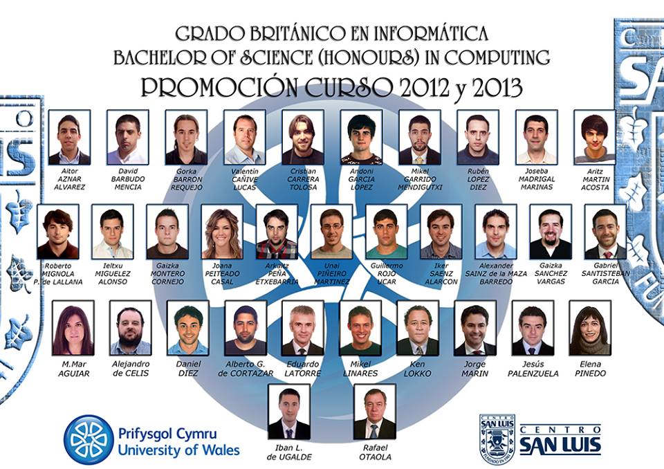 13/03/2015 - InformaciónEl pasado lunes día 9, las alumnas y alumnos que concluyeron sus estudios universitarios en el Centro San Luis en el curso 2013-14, recibieron de las manos de las autoridades competentes de la Universidad de Gales, sus títulos de grado en informática.